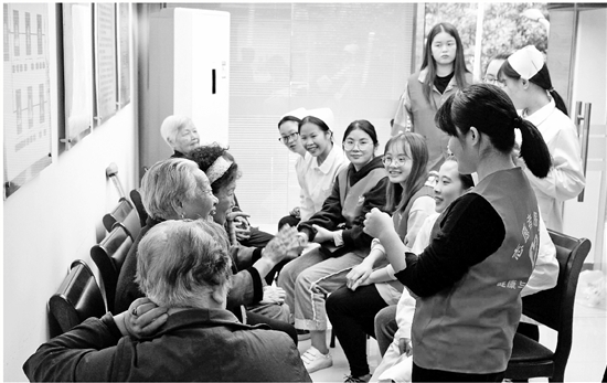 浙江树人大学健康与社会管理学院学生为老人服务。